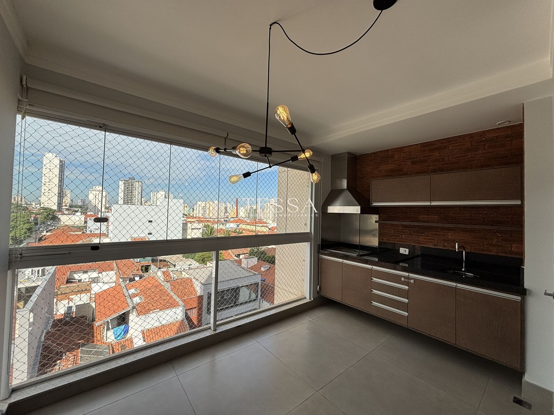 A área social é o grande destaque, com uma composição fluida entre sala, cozinha e varanda, criando um espaço amplo, leve e muito funcional. A cozinha americana, com marcenaria planejada, se conecta naturalmente ao living, favorecendo a convivência e trazendo mais praticidade para a rotina.