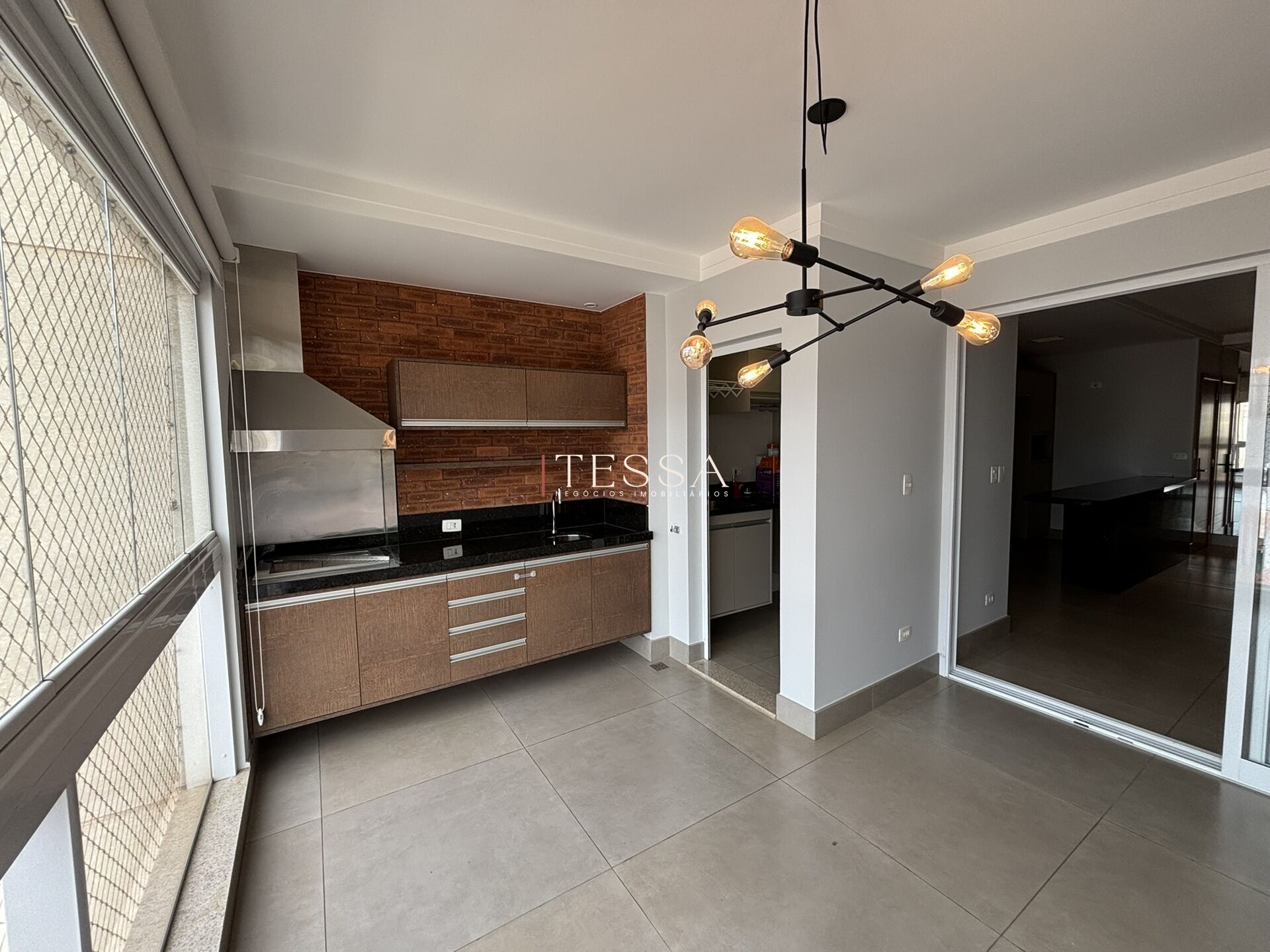 A integração se estende até a varanda gourmet com churrasqueira, que funciona como uma verdadeira extensão da sala — perfeita para momentos de lazer e para receber com conforto.